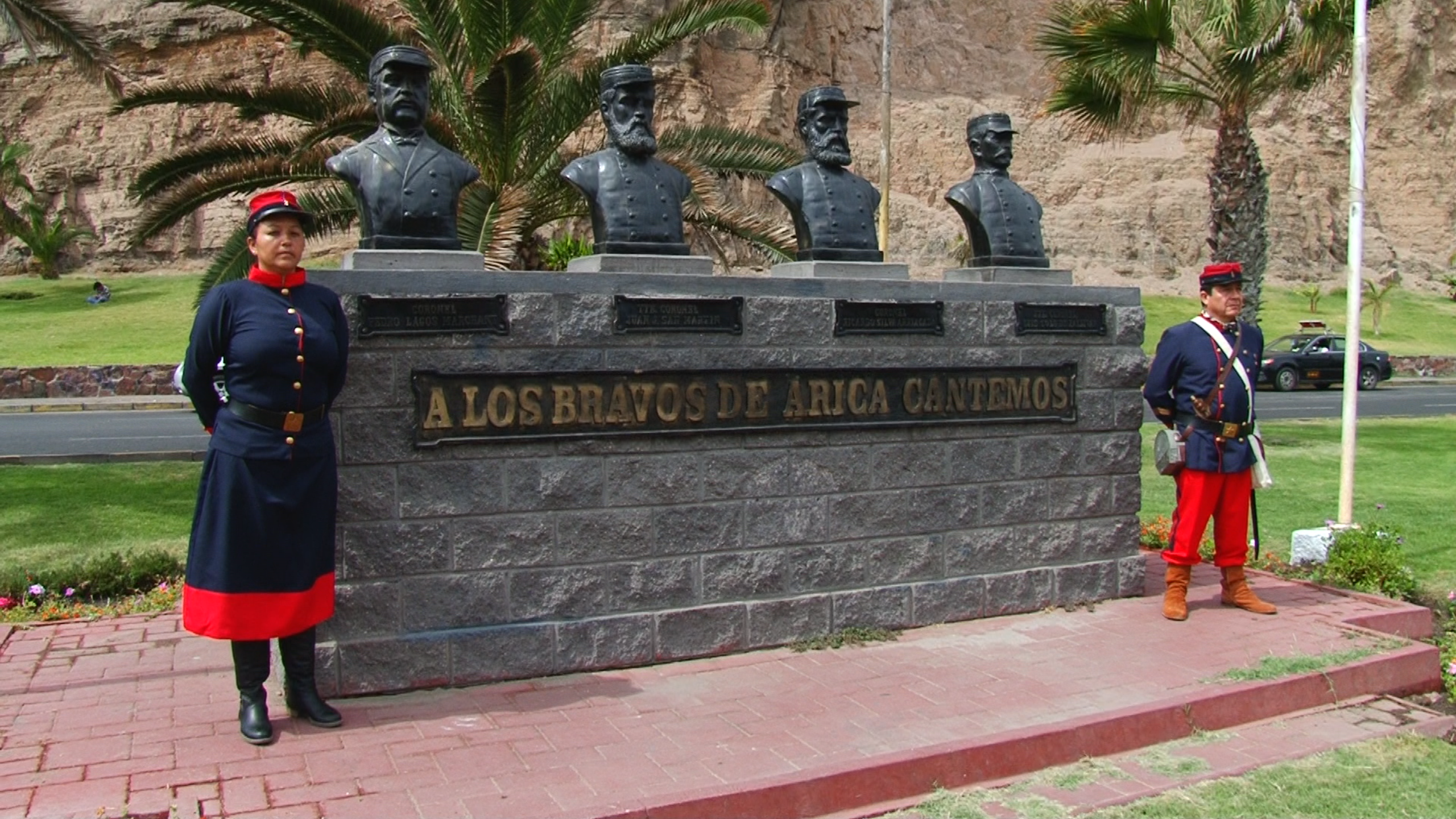 Vestidos con uniformes de los soldados de la Guerra del Pacífico, Agrupación Histórica y Patrimonial “Los Viejos Estandartes”, en un acto simbólico -al pie del Morro de Arica y en el monumento a los «Bravos de Arica»- declararon su apoyo a la delegación Chilena ante el Tribunal de La Haya, recordando a los Héroes de la Guerra del Pacifico.