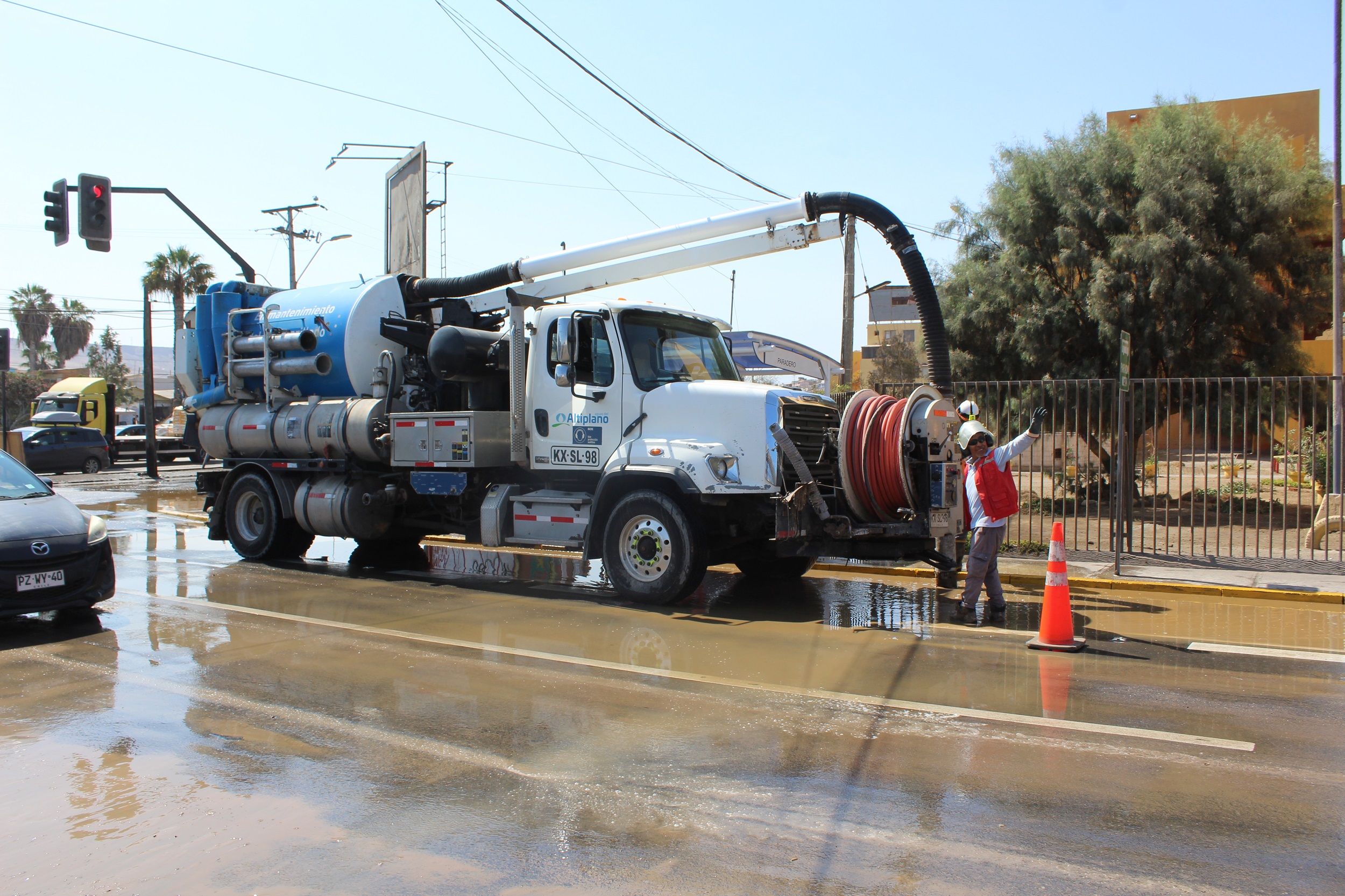 Con un amplio despliegue de recursos humanos y materiales, Aguas del Altiplano atendió la emergencia ocurrida durante la mañana de este viernes 05 de abril en el estanque Saucache, sector del Terminal Agropecuario. La filtración generó escurrimiento de agua potable en la vía pública, arrastrando sedimentos en el sector de la avenida alcalde Manuel Castillo Ibaceta.