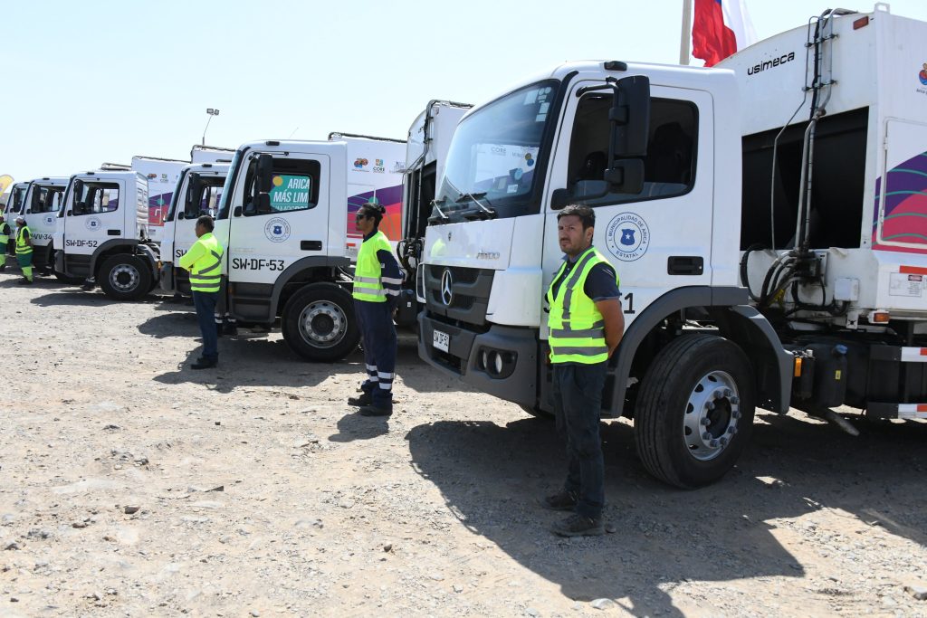 Los trabajadores de Aseo y Ornato recibieron las llaves de estos nuevos camiones recolectores, los cuales comenzarán a operar de inmediato para garantizar la limpieza de Arica. Gracias a una inversión total de $1.539.227.000 provenientes de recursos del Gobierno Regional, se logró ampliar la flota activa de camiones recolectores para la comuna, que ahora asciende a 20 unidades.