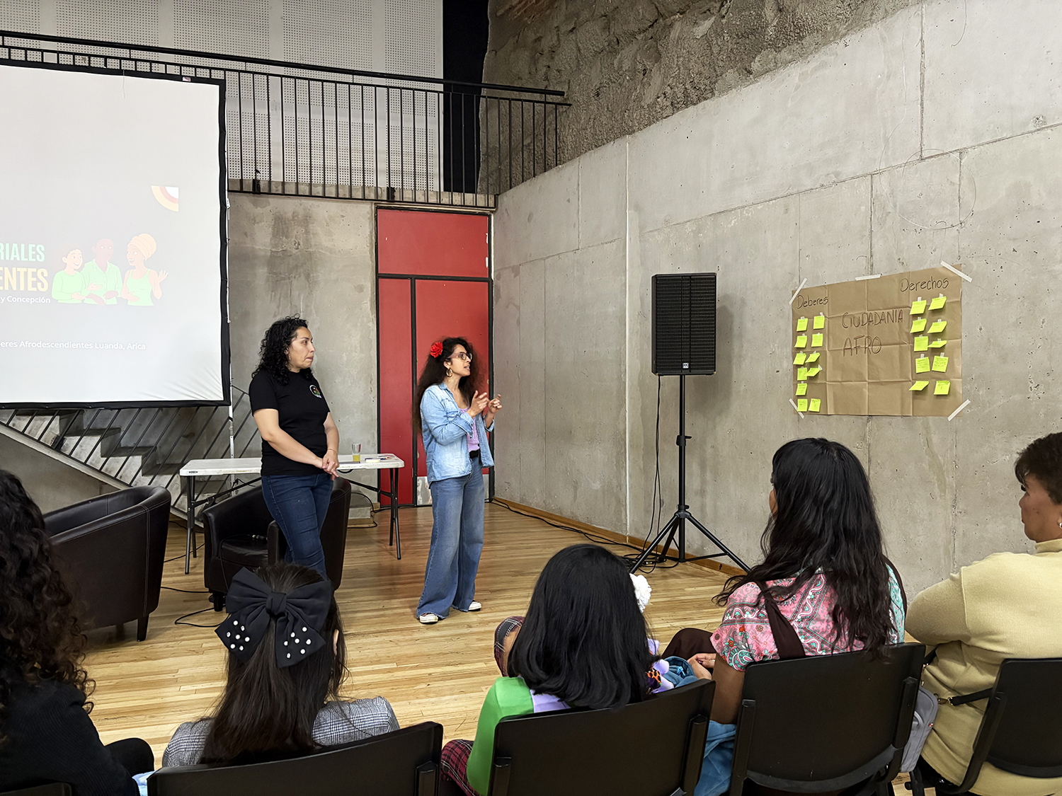 Durante ambas jornadas, las y los asistentes participaron en diálogos participativos que abordaron preguntas clave sobre la ciudadanía afrodescendiente: ¿qué significa ser ciudadano?, ¿cuáles son nuestros derechos y deberes?, ¿podemos hablar de una ciudadanía afro y qué implicaría hacerlo? Estas reflexiones abrieron paso a un debate profundo sobre la presencia afrodescendiente en Chile y los desafíos que aún persisten para su reconocimiento pleno, guiado por las integrantes de Luanda, Oriana Estay y Macarena Gómez.