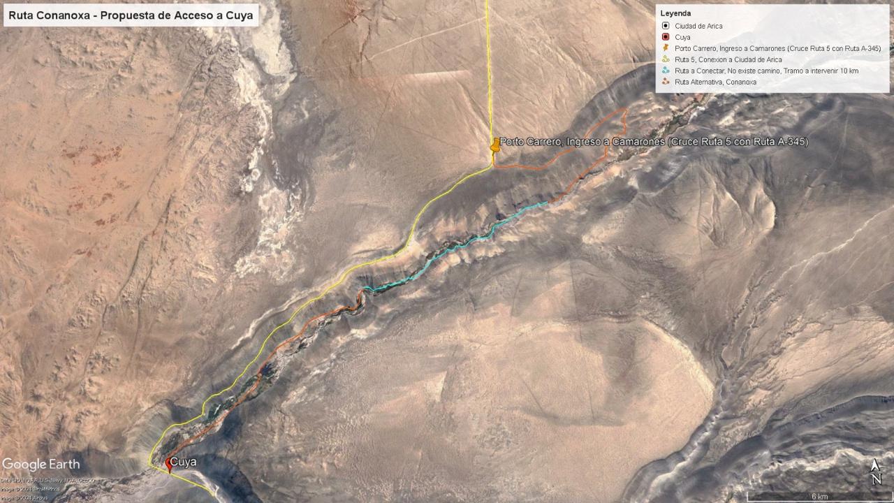 En este contexto, la Municipalidad de Camarones ha planteado habilitar la antigua ruta Conanoxa o ruta A-355, a través del Valle de Camarones, como vía alternativa para evitar el aislamiento total por vía terrestre.