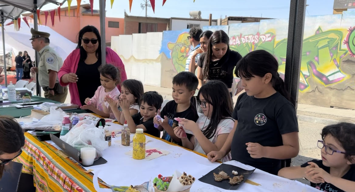 Es así como los niños del sector pudieron participar del taller Arqueojuegos del Espacio Cultural Arganda, que les permitió hacer momias Chinchorro de greda y realizar su propio “arte rupestre” con diversas técnicas de pintura.