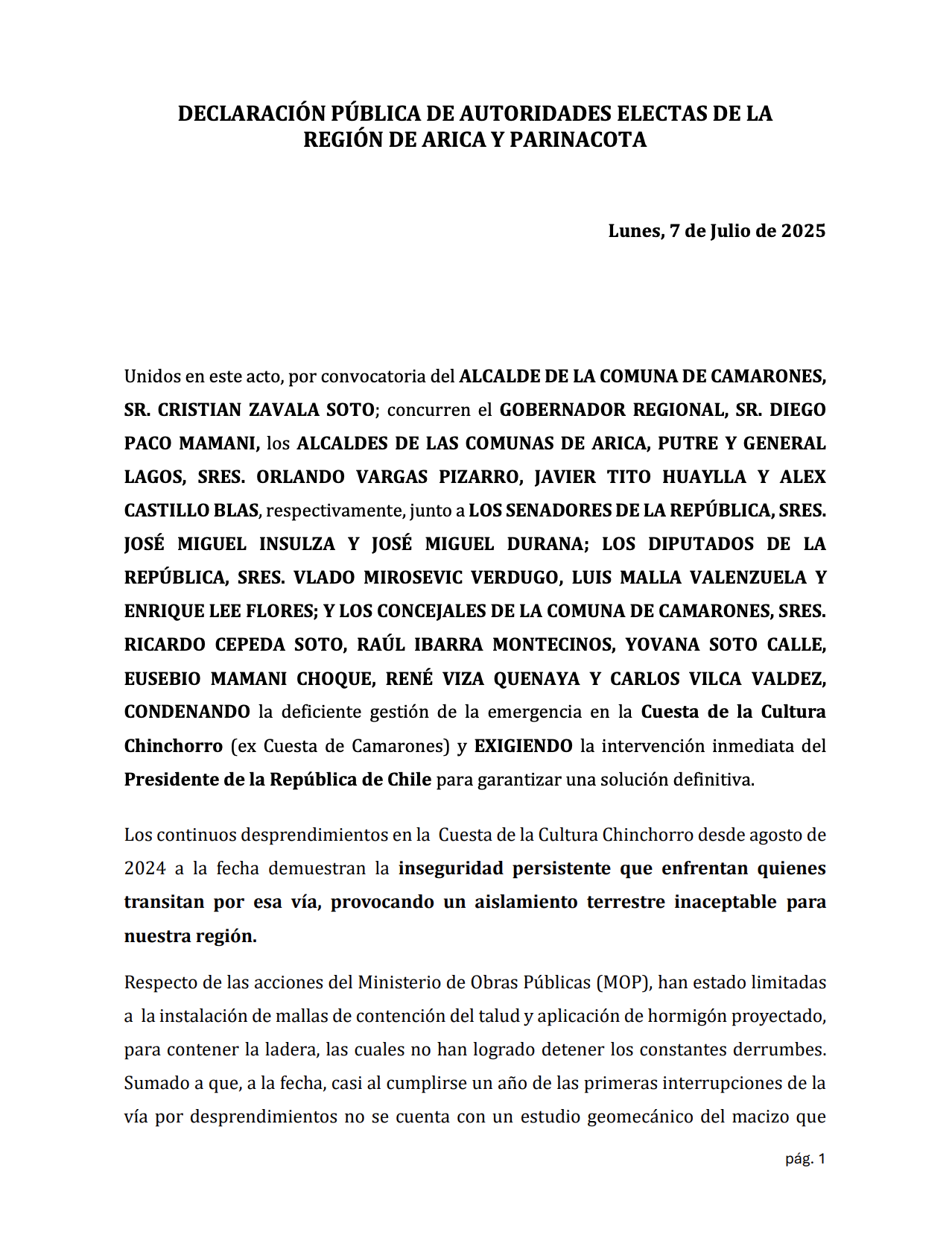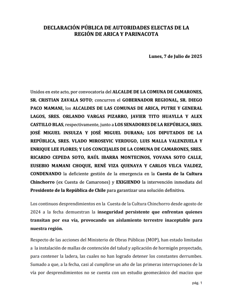 InicioDestacada 7 julio, 2025 FacebookInstagramTwitterYoutube Últimas noticias Destacada Hablando de desaladora y Plan Regulador, la CChC Arica inició séptima temporada de su Programa radial Destacada Histórico: Hospital de Arica realizó primer trasplante de piel con donante vivo Destacada Llegan once nuevos profesionales de la salud a Arica Destacada Disponibles las bases del Fondo Concursable de Aguas del Altiplano Declaración pública de autoridades electas de la región por derrumbes en Cuesta Cultura Chinchorro : Exigen intervención inmediata del Presidente de la República para garantizar una solución definitiva Cuota FacebookTwitterPinterestWhatsApp Comentarios Dejanos tus comentarios 7 julio, 2025 admin FacebookInstagramTwitterYoutube Relacionadas Destacada Hablando de desaladora y Plan Regulador, la CChC Arica inició séptima temporada de su Programa radial Destacada Histórico: Hospital de Arica realizó primer trasplante de piel con donante vivo Destacada Llegan once nuevos profesionales de la salud a Arica Destacada Disponibles las bases del Fondo Concursable de Aguas del Altiplano Destacada Estudiantes ariqueñas crean una app con IA para conocer el recorrido del camión de la basura y se suman a la campaña “Cuidemos Arica” Latest Posts Destacada Hablando de desaladora y Plan Regulador, la CChC Arica inició séptima temporada de su Programa radial Destacada Histórico: Hospital de Arica realizó primer trasplante de piel con donante vivo Destacada Llegan once nuevos profesionales de la salud a Arica Destacada Disponibles las bases del Fondo Concursable de Aguas del Altiplano