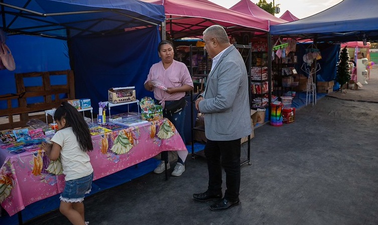 “En Azapa viven muchas personas y en vez de ir a sufrir con los tacos y las aglomeraciones de gente en el centro de Arica. Aquí los vecinos del valle pueden comprar de todo para regalarle a los niños en esta Navidad”, le dijo Marjorie al viejito Pascuero.