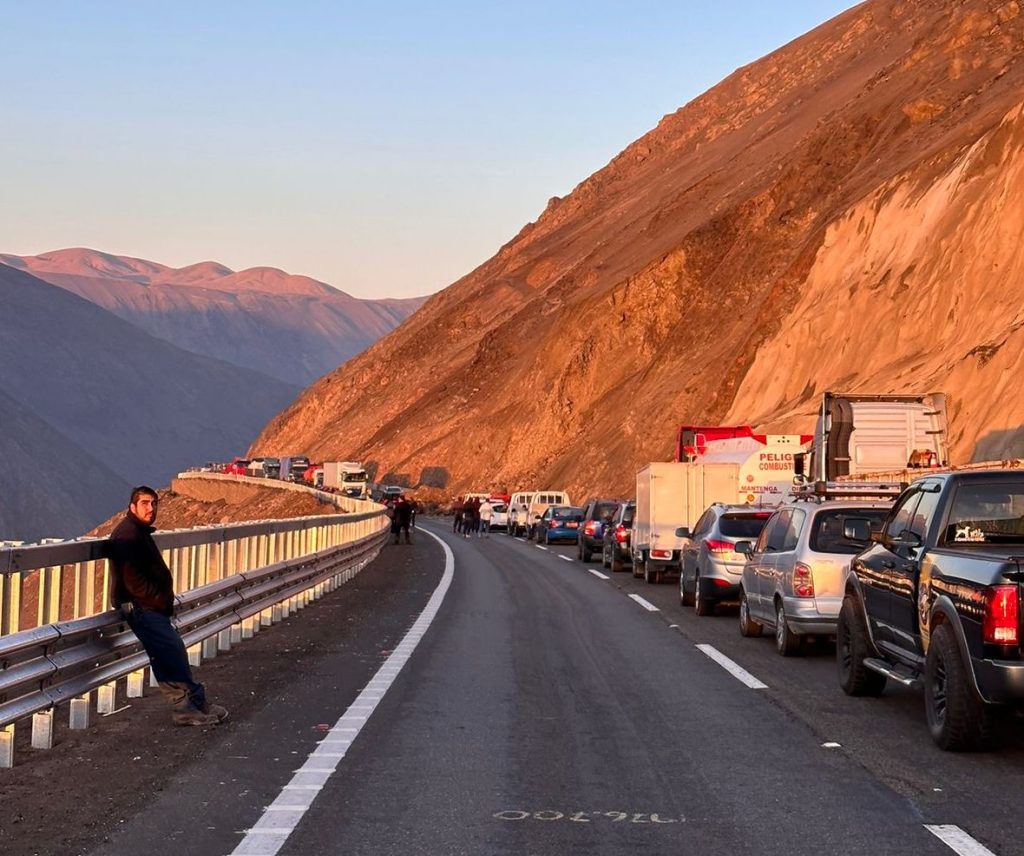 Vehículos mayores se encuentran detenidos en la cuesta a la espera de habilitar la ruta.