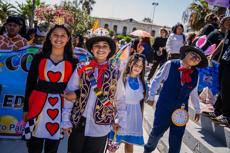 Un multitudinario pasacalle se tomó las calles de Arica en el marco de la conmemoración del Día Internacional del Libro, actividad organizada por la Municipalidad de Arica a través de su Dirección de Cultura. La jornada reunió a niños, niñas y jóvenes junto a sus familias, quienes participaron con entusiasmo luciendo coloridos disfraces inspirados en distintos cuentos y libros clásicos.