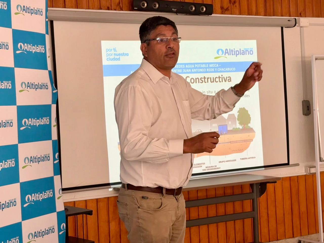 Al respecto, Luis Recabarren, jefe del Departamento de Obras de Aguas del Altiplano, destacó el valor de acercar los procesos técnicos a la comunidad. “Muchas veces las obras generan inquietud porque no siempre se conoce todo lo que implican. Con esta capacitación queremos que los dirigentes entiendan cada etapa del proceso, para que puedan explicar con claridad qué se está haciendo y por qué es necesario, especialmente en un contexto de escasez hídrica como el que vive Arica. Estas obras no son aisladas, sino parte de un trabajo planificado para asegurar la continuidad y mejorar la calidad del servicio de agua para las familias”, señaló.