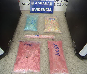 Se trata de los sujetos de nacionalidad colombiana identificados como David Espinosa Tamayo (24) y Andrés Tobon (28) que traían cerca de tres kilos y medio de la droga de síntesis éxtasis (11.807 dosis), además de otras 4.500 dosis de LSD y 76 gramos de anfetaminas.