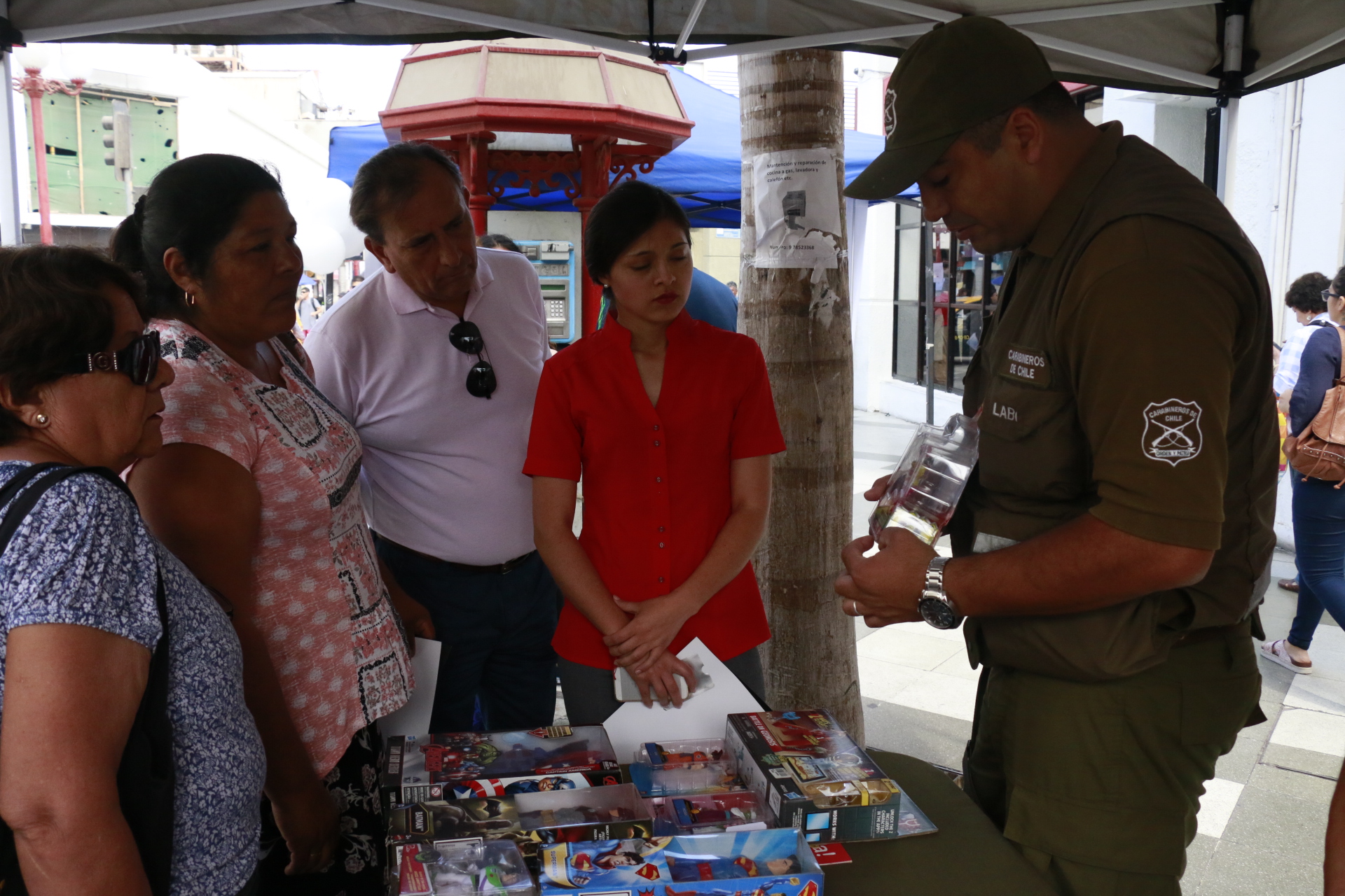 El Sargento Segundo Eduardo Rodriguez Espinoza del Laboratorio de Criminalística de Carabineros de Arica, señaló que el principal objetivo en esta oportunidad era que la gente aprenda a reconover de sus preucupaciones -entre otras- es que la gente sepa identificar los juguetes en cuanto a su fabricación, especificaciones técnicas y advertencias, en sus compras de navidad, ya que algunas simples observaciones, pueden evitar la compra de un producto falsificado o dañado. Es más ya que se puede e evitar su compra o más allá evitar accidentes o intoxicaciones.