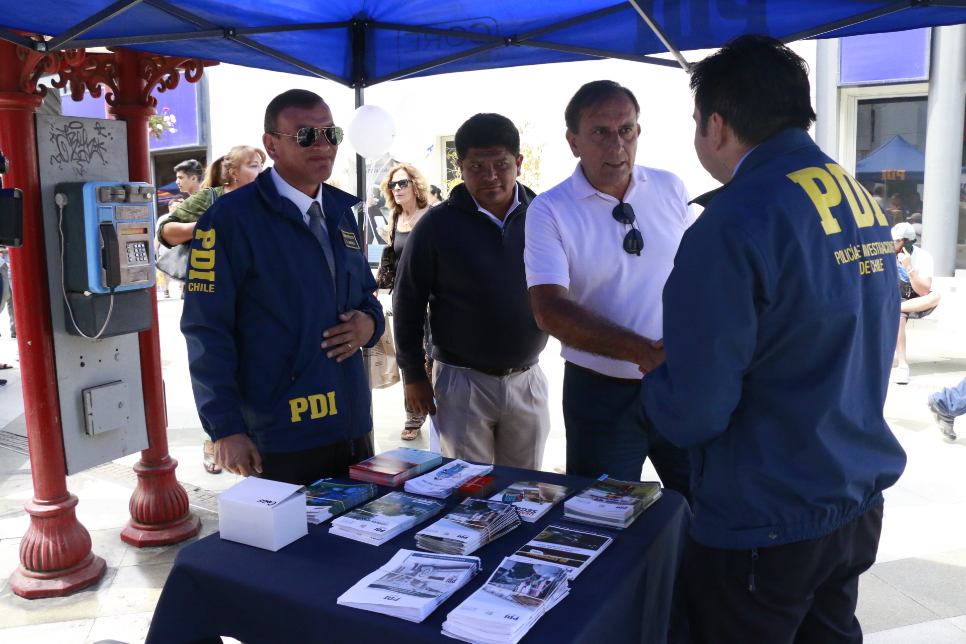 Ya estamos acostumbrados a verlos con sus stands en el paseo 21 de Mayo. Un stand es verde y el otro es Azul. Ambos con mucha gente a su alrededor. Seguramente ya sabe de quienes hablamos; se trata de los servicios preventivos de Carabineros y la PDI quienes convocados por la Coordinación Regional de Seguridad Pública, despliegan su personal en el centro de Arica para entregar consejos a la comunidad.