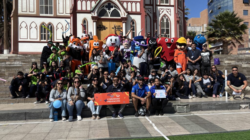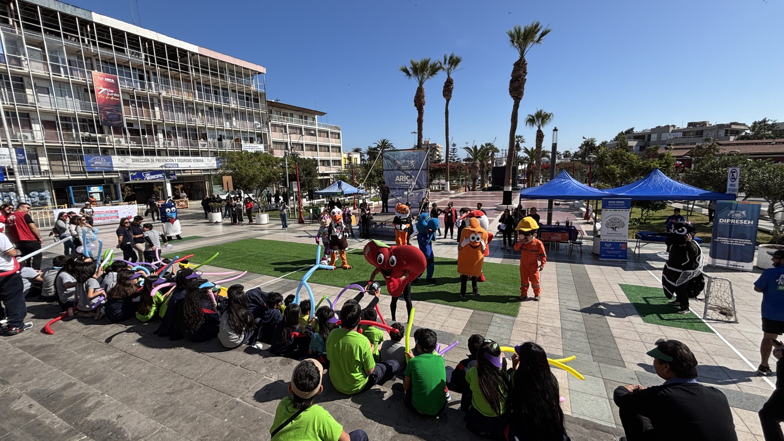 El evento, realizado en colaboración con la Ilustre Municipalidad de Arica a través de la Dirección de Prevención y Seguridad Pública y Humana, junto a la Dirección Regional de SENDA, convocó a 10 corpóreos representantes de distintas instituciones, quienes animaron la jornada con humor, deporte y mensajes de autocuidado para niñas, niños y jóvenes.