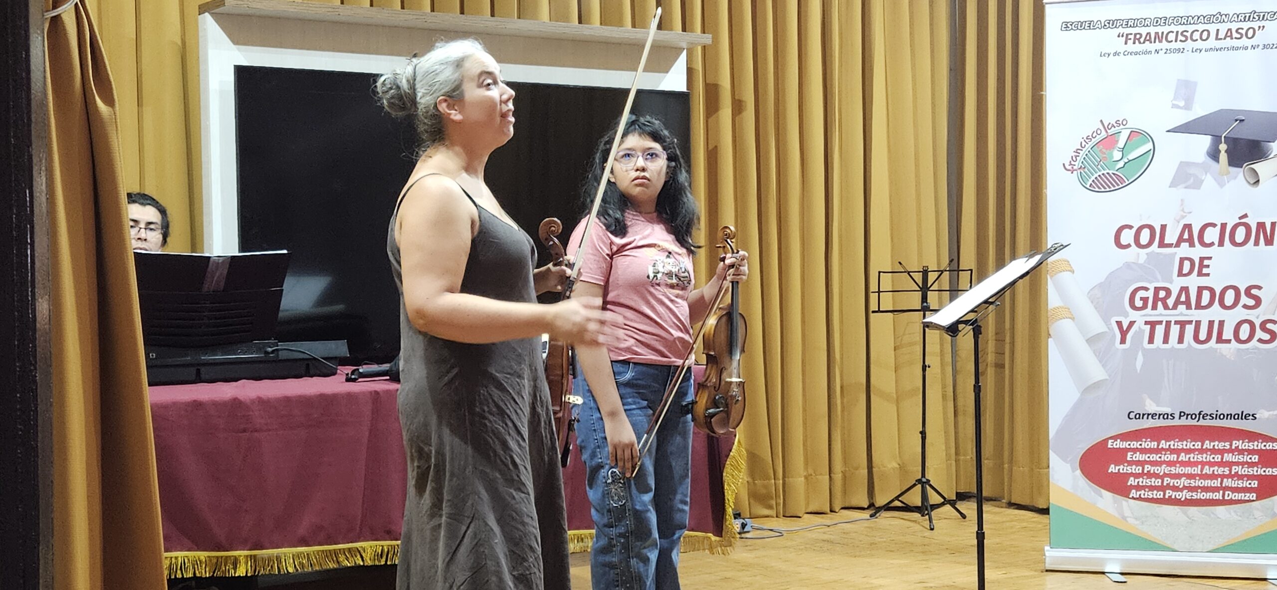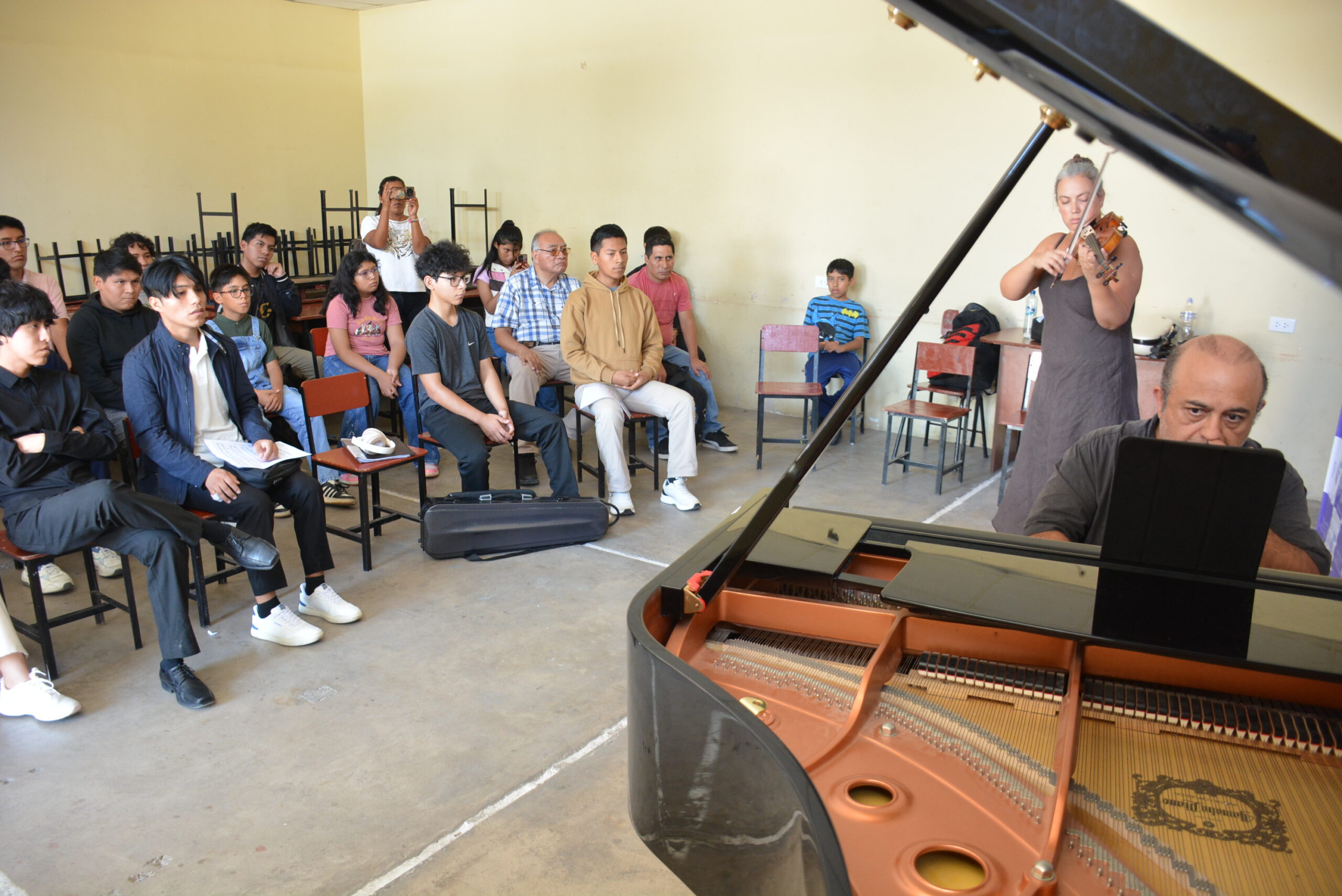 En la vecina ciudad peruana, el sábado pasado se reunieron más de 30 jóvenes en la Escuela Superior de Formación Artística Pública (ESFAP) “Francisco Lasso”. Allí los artistas interpretaron piezas de Mozart y de De Falla del concierto que ofrecieron el viernes y luego presenciaron audiciones con temas preparados por los alumnos.