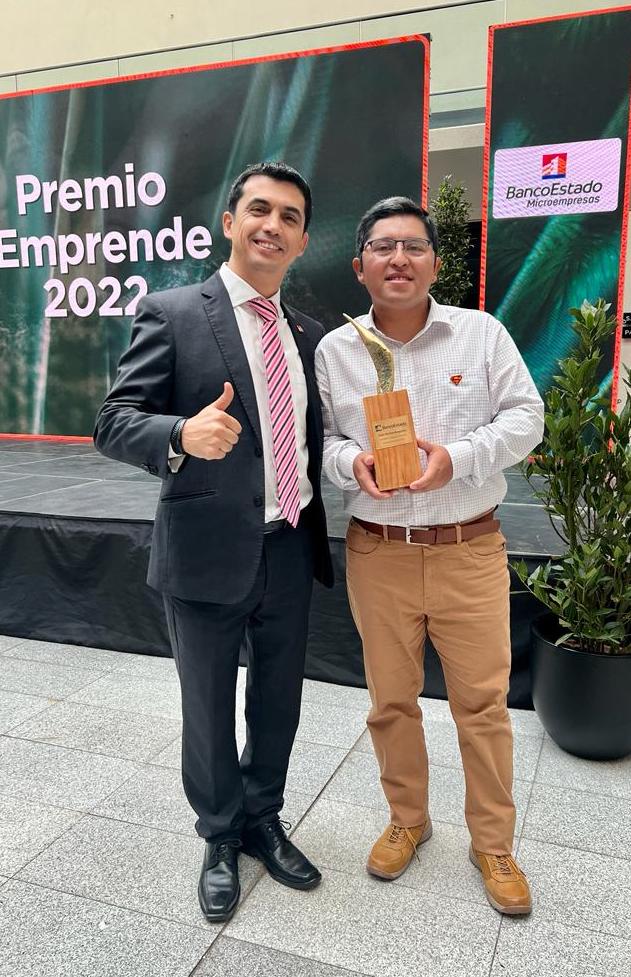 Elías Molina, ganador del Premio Emprende de BancoEstado, comentó que “este premio está concentrado en los negocios que crecieron en pandemia y que se esforzaron por tener un emprendimiento. Tenemos una pastelería que se llama Pastelería Papá Roberto, ha sido todo un esfuerzo en familia poder realizarlo. Pueden buscarnos en redes sociales Pastelería Papá Roberto, conocer nuestros dulces y hacer pedidos”.
