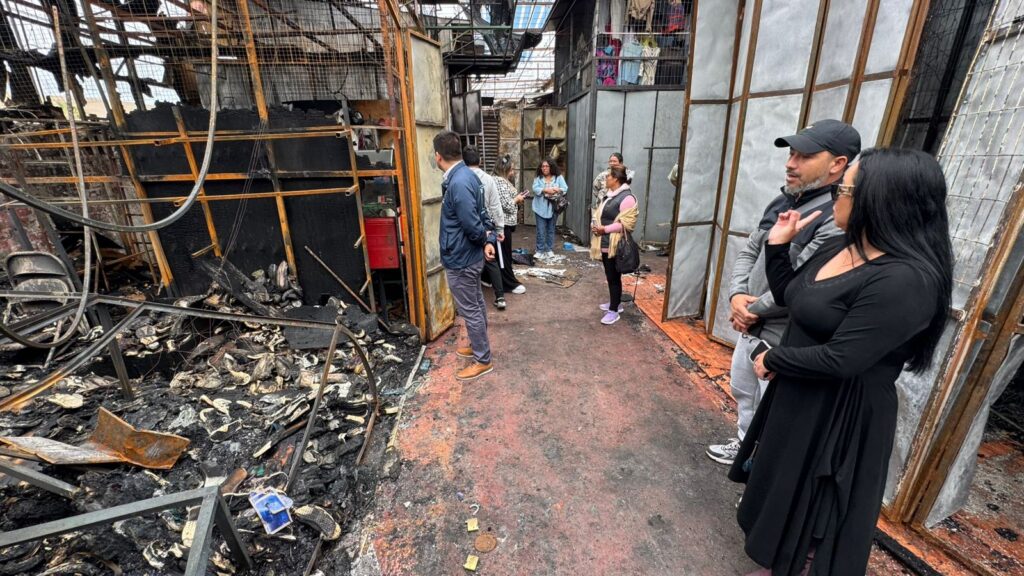Autoridades regionales encabezaron un operativo en terreno para acompañar a los locatarios afectados y coordinar acciones de apoyo tras el incendio que, la noche del domingo, dejó 26 locales dañados.