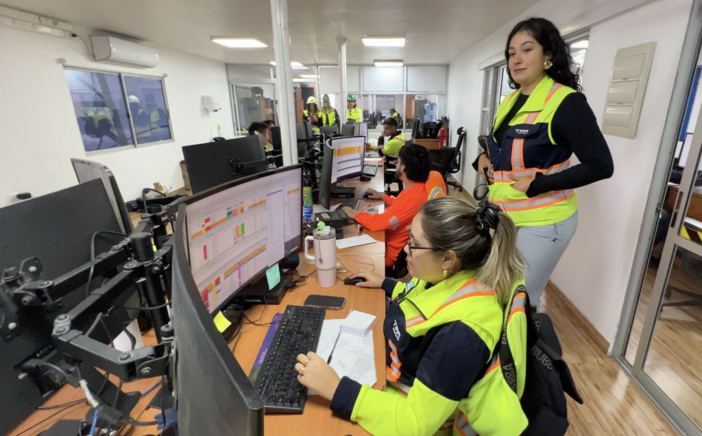 Se le ve caminando segura, siempre con casco y chaleco de seguridad, entregando instrucciones a través de una radio. También puede estar en una oficina con varias pantallas encendidas, monitoreando qué naves recalan, qué cargas traen, o cuáles se van, mientras un grupo de personas, hombres principalmente, chequean que el movimiento portuario no presente dificultades.