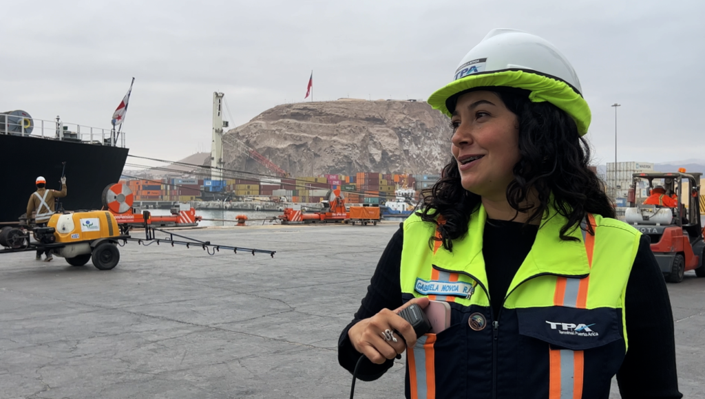 Siete años lleva Gabriela Novoa trabajando en el Terminal Puerto Arica (TPA). Ingresó a los 21 a un trabajo que cargaba el estigma de ser ‘masculinizado’, pero demostró con creces que no hay diferencias de género cuando se trata de hacer lo que le apasiona.