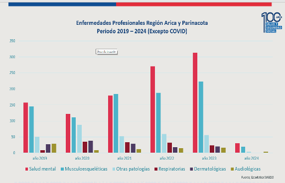 El Director Regional del Instituto de Seguridad Laboral de Arica Parinacota, Roberto Lau Suárez, nos cuenta que el Seminario de Enfermedades Profesionales fue revelador, en cuanto a cuáles son las enfermedades profesionales que más afectaron a las y los trabajadores de la región de Arica Parinacota en los últimos 5 años. Según lo indica la SUSESO y la SEREMI de Salud, durante el periodo 2020 – 2022 el COVID lideró las enfermedades profesionales (32%) seguido de enfermedades de Salud Mental (20,7%) y enfermedades músculo esqueléticas (16,8%).