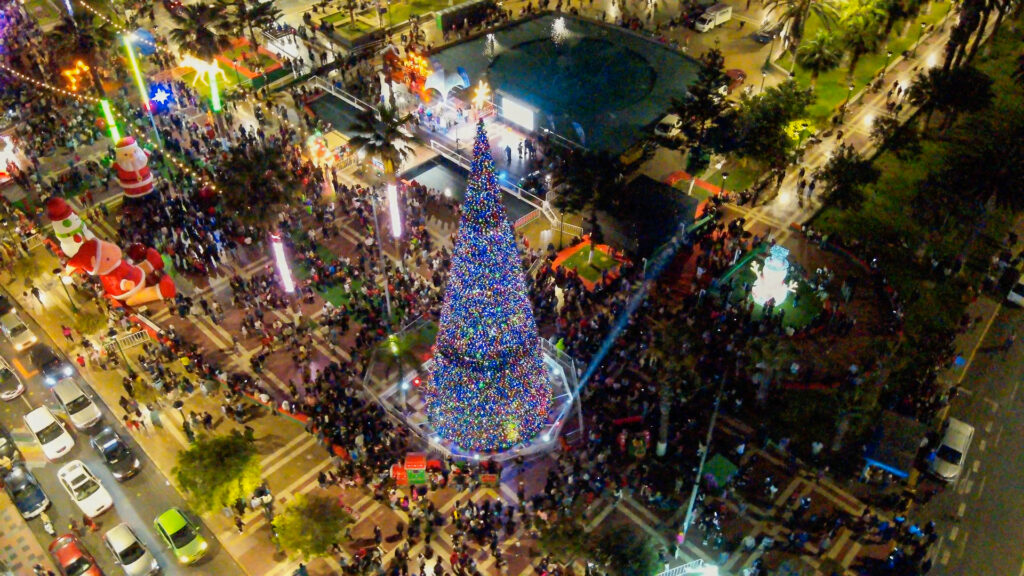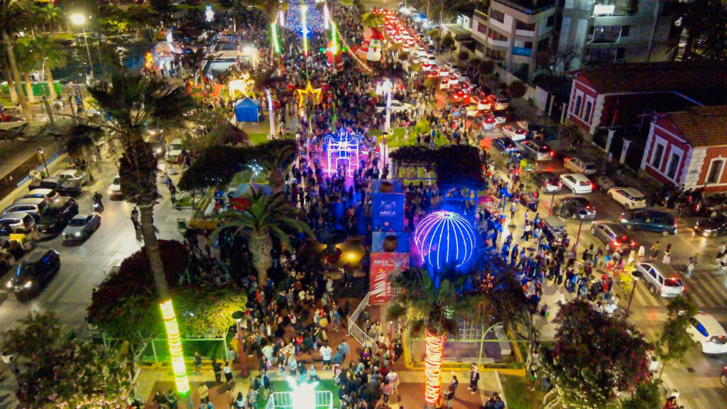 Las caritas felices y los likes se multiplicaron por miles en el parque Vicuña Mackenna y en las redes sociales de la Municipalidad de Arica. Con el encendido del gigantesco arbolito de Navidad. El ambiente navideño reina en la puerta norte de Chile y los niños y niñas de Arica esperan ansiosos la llegada de Santa Claus.