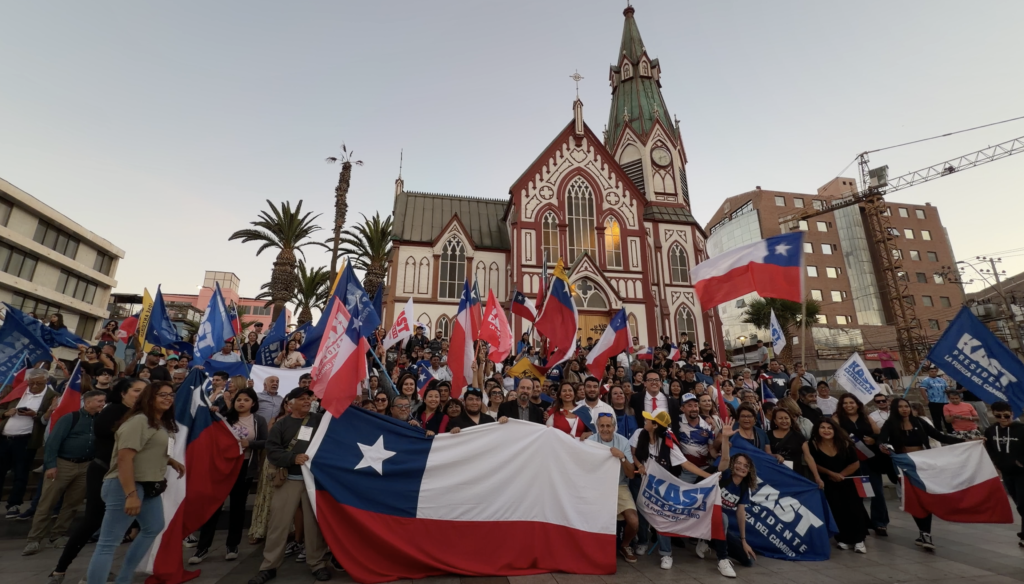 Tras saberse los primeros resultados, los adherentes del José Antonio Kast en Arica, se reunieron en la gradas de la Catedral San Marcos, tradicional punto de celebraciones de los ariqueños.