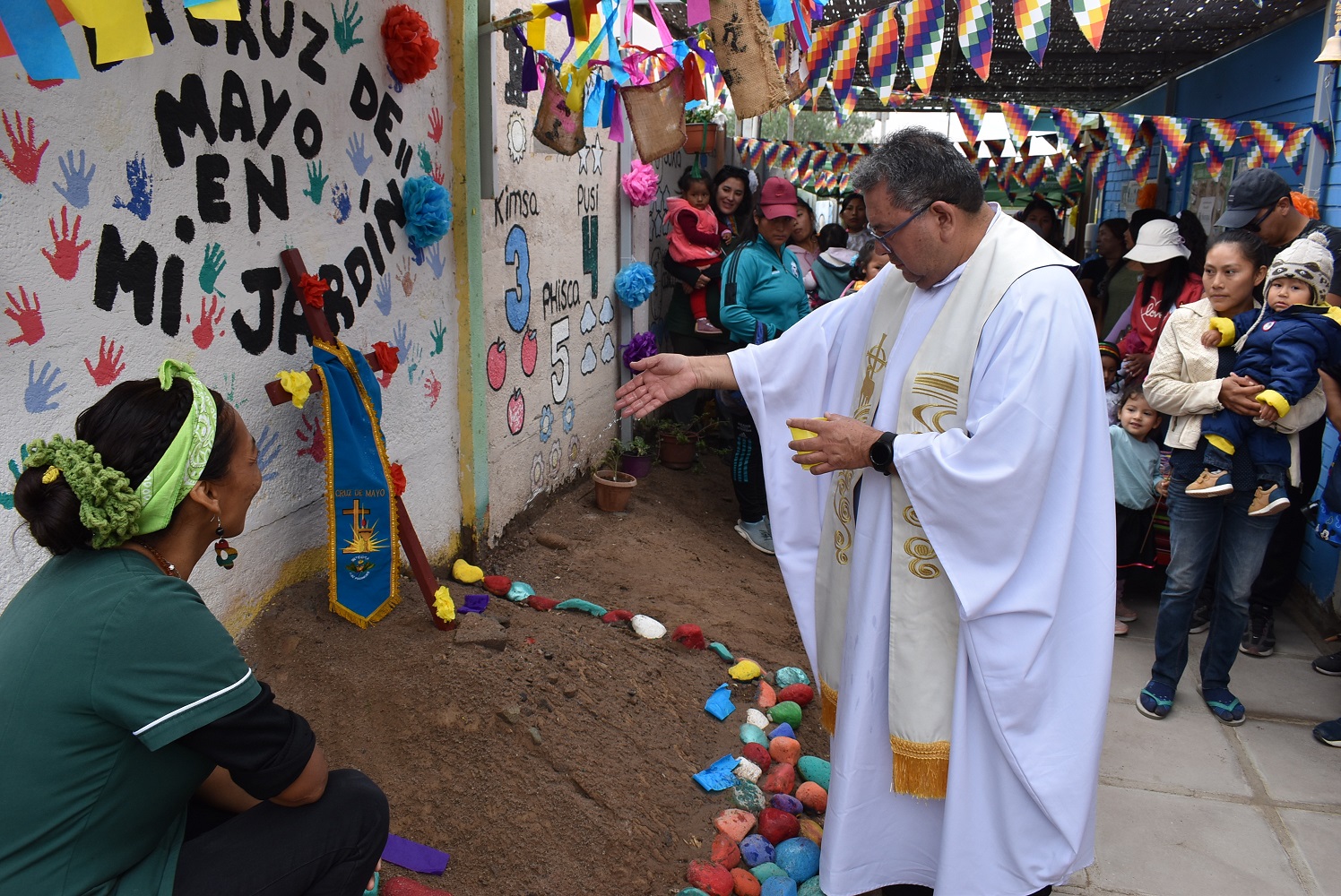 La costumbre dice que todo el grupo va a buscar la cruz a uno de los cerros cercanos al jardín para, en manos de un apoderado o apoderada, llevarla hasta el patio del establecimiento educativo en donde es bendecida por el sacerdote del pueblo y venerada por las familias. Lo primero estuvo a cargo del párroco Fernando Meneses y la bajada por parte de la apoderada Claudia Wasna.