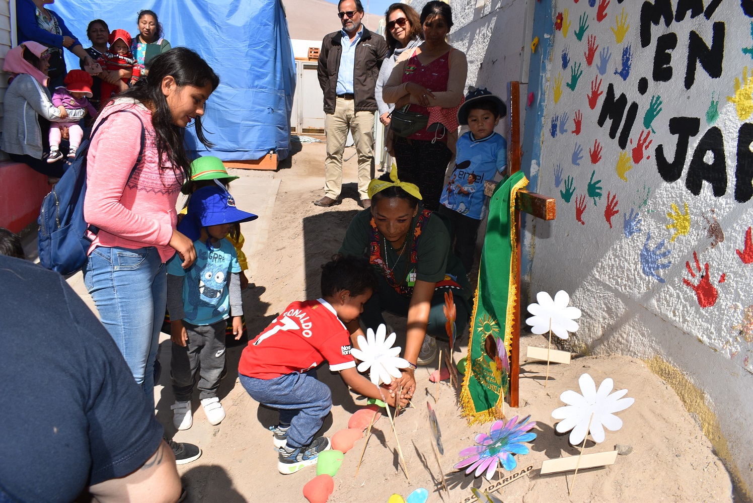 Ubicada ya en el jardín infantil, la cruz es bendecida y se transforma en receptora de los buenos deseos y pedidos de prosperidad por parte de los niños, niñas y toda la comunidad educativa para el presente y próximo año, preámbulo de una fiesta con música y comidas tradicionales que dio cierre a la celebración.