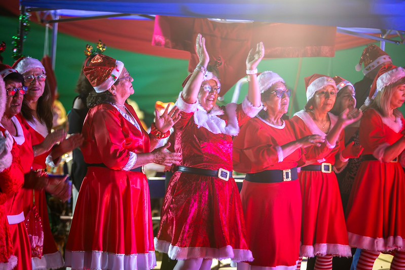 Repleta de bote en bote y plagada de un ambiente navideño que te lo encargo. Así estaba la Oficina Comunal del Adulto Mayor, OCAM. El encendido del árbol de Navidad definitivamente despertó el espíritu navideño en las personas mayores. Esa frase que todos llevamos un niño dentro de nuestros corazones, es la pura y santa verdad.