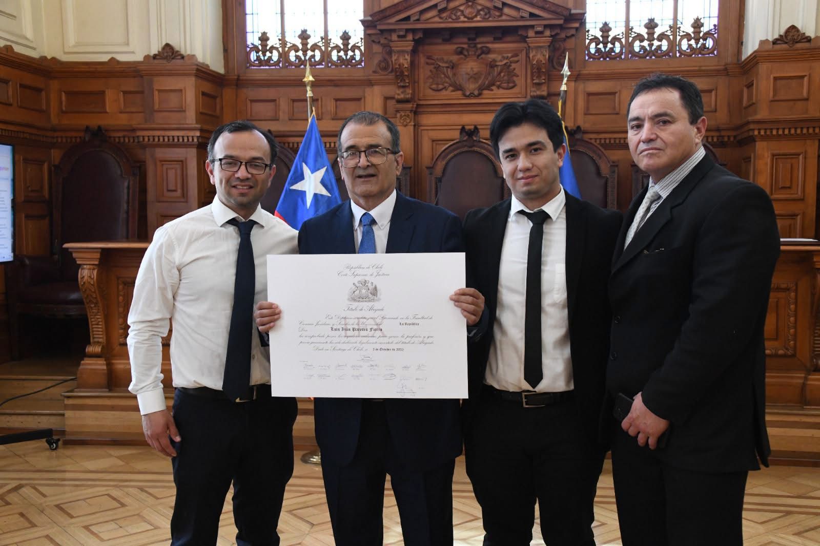 Estudió siete años, divididos en cinco de carrera, uno preparando el grado, y seis meses de práctica. Sacó los ramos uno a uno, arrastrando algunos, celebrando otros. Y cuando llegó la hora de jurar, lo hizo en Santiago. Hoy trabaja en materias civiles, laborales y de familia, junto a dos socias a quienes conoció durante su práctica.