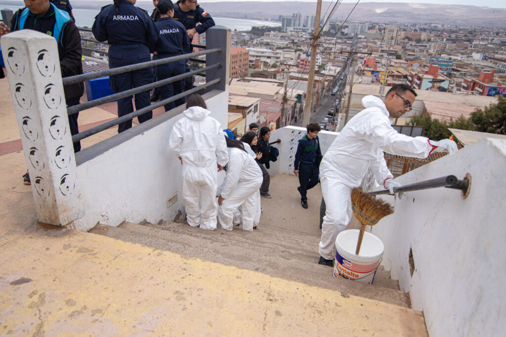 Como parte de las actividades de vinculación de distintas empresas del sector marítimo portuario, se realizó una nueva jornada de limpieza y mejoramiento el casco antiguo y el sector El Mirador de la Virgen, una actividad que forma parte de la Mesa de Trabajo Anual orientada a la preservación de los espacios históricos y turísticos de Arica.
