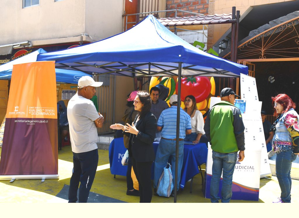 El stand judicial se ubicó en el acceso del centro de abastos y en él la presidenta de la Corte de Apelaciones de Arica, Claudia Arenas, las juezas Fabiola Collao y Paulina Zúñiga, además de la funcionaria Claudia Cautín fueron la encargadas de dialogar con los usuarios que se acercaron al stand, donde recibieron información sobre las formas de denunciar la violencia física, sicológica, económica u obstétrica que pueden sufrir las mujeres.