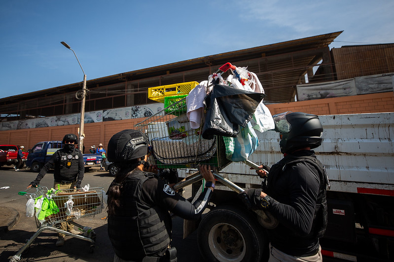En el operativo fueron decomisados: alimentos preparados sin resolución sanitaria; productos de origen animal sin procedencia; diversos artículos de origen extranjero ingresados de manera ilegal. Además, fueron retirados de circulación carros de supermercado, los que serán devueltos a sus propietarios.