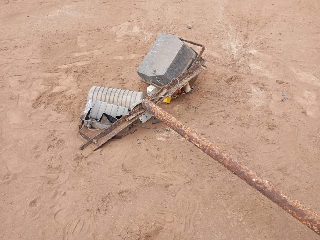 El ventarrón del jueves 31 de julio de 2025 le pasó la cuenta a la Liga Pacífico. Una de sus añosas luminarias no soportó las ráfagas de viento de 50 kilómetros por hora y cayó a tierra. Los niños del club María Vargas se quedaron sin cancha donde jugar.