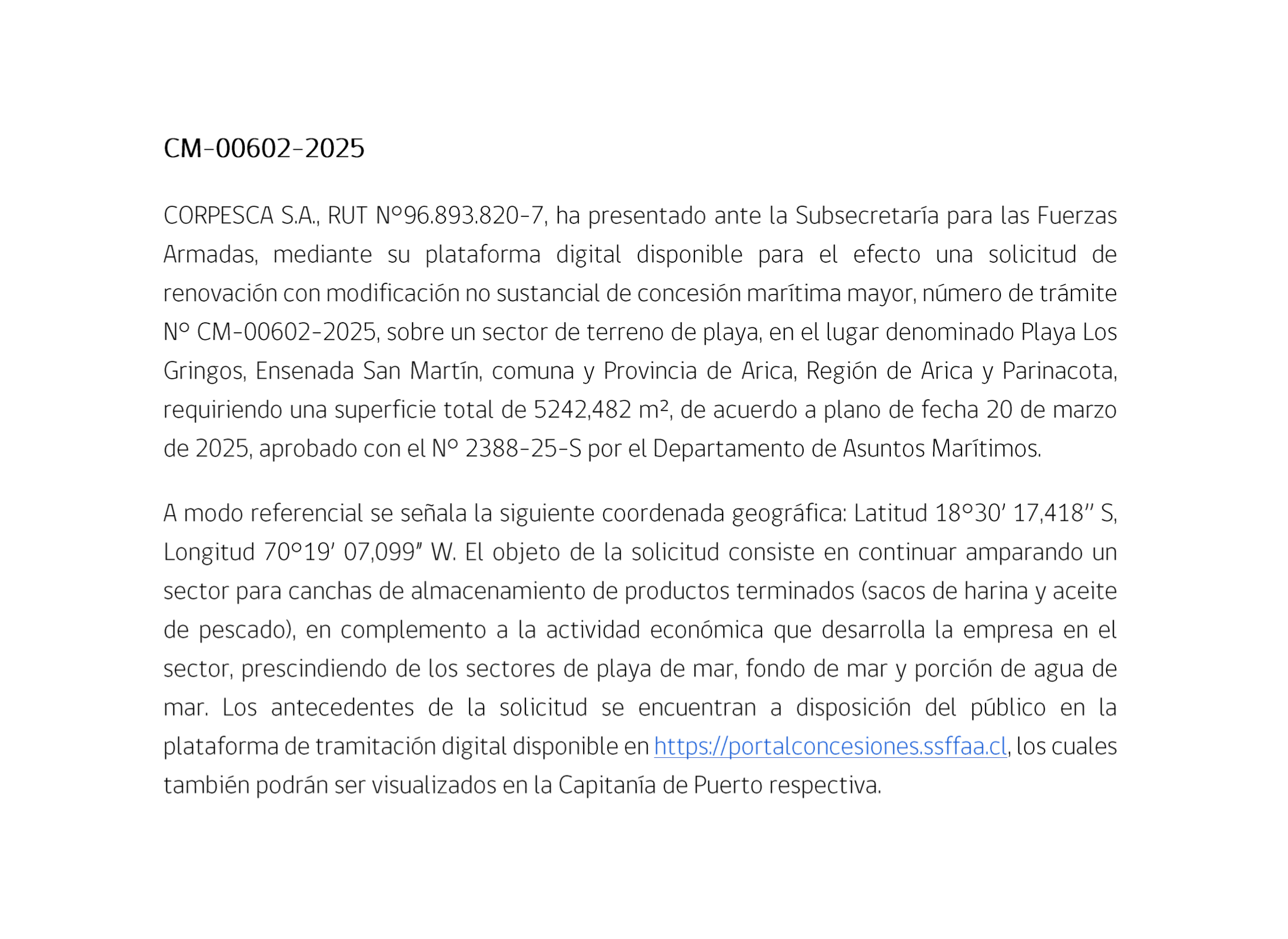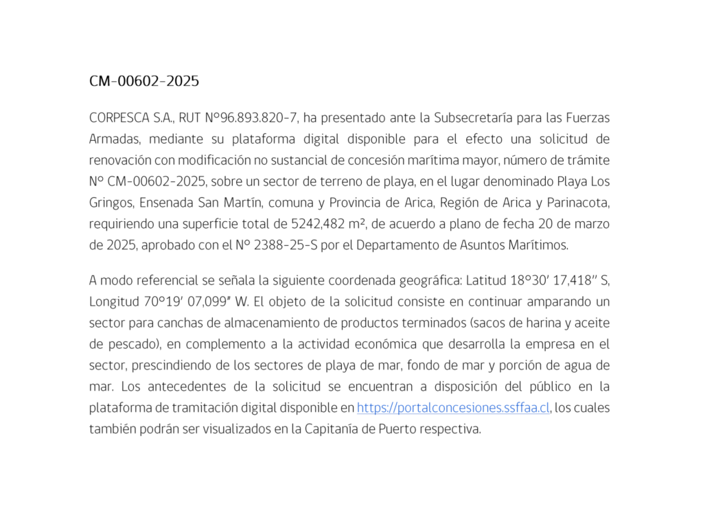 Publicación de Extracto de Concesión Marítima