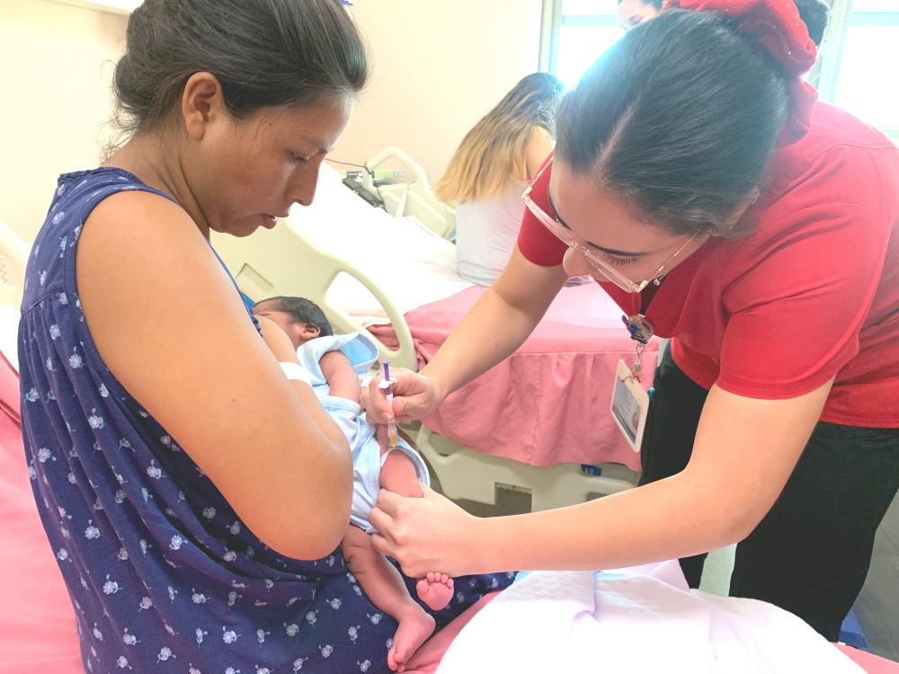 Para constatar el inicio de este proceso en la maternidad del Hospital Regional de Arica Dr. Juan Noé, la SEREMI de Salud, Marta Saavedra, la directora del Servicio de Salud Arica y Parinacota (SSAP), Patricia Sanhueza, y el director del establecimiento, Pedro Bahamondes, acompañaron a dos madres en la administración del fármaco.