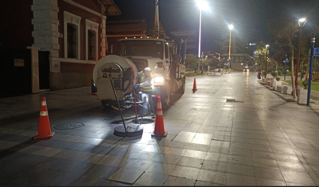 - Las labores se desarrollan en horario nocturno e incluyen limpieza y mantención de colectores en puntos críticos de la ruta del carnaval, anticipándose al aumento de uso del sistema por la llegada de visitantes y público.