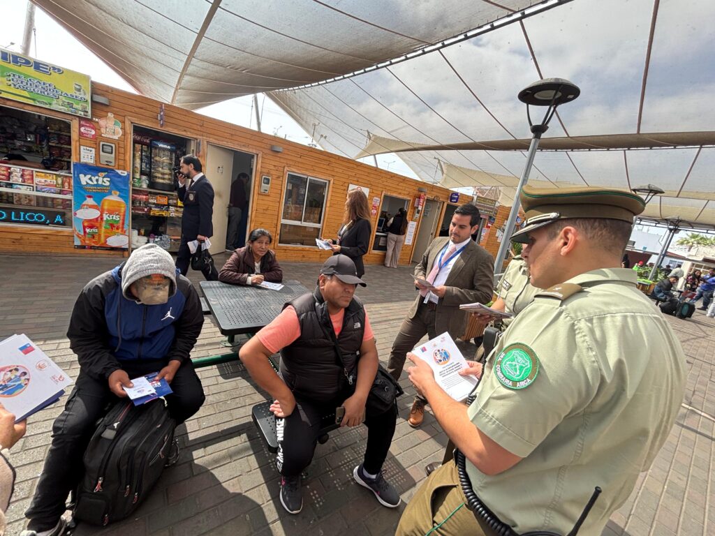 En el marco del Mes contra la Explotación Sexual Comercial de Niños, Niñas y Adolescentes (ESNNA), el seremi de Gobierno, Nicolás González; el director regional del Servicio de Protección, Gustavo Marín; la Secretaría Regional de Seguridad Pública, a través del subprograma de Atención a Víctimas; Carabineros y la Policía de Investigaciones realizaron un importante despliegue en el Terminal Rodoviario e Internacional de Arica, invitando a la comunidad a denunciar cualquier hecho que constituya este grave delito.