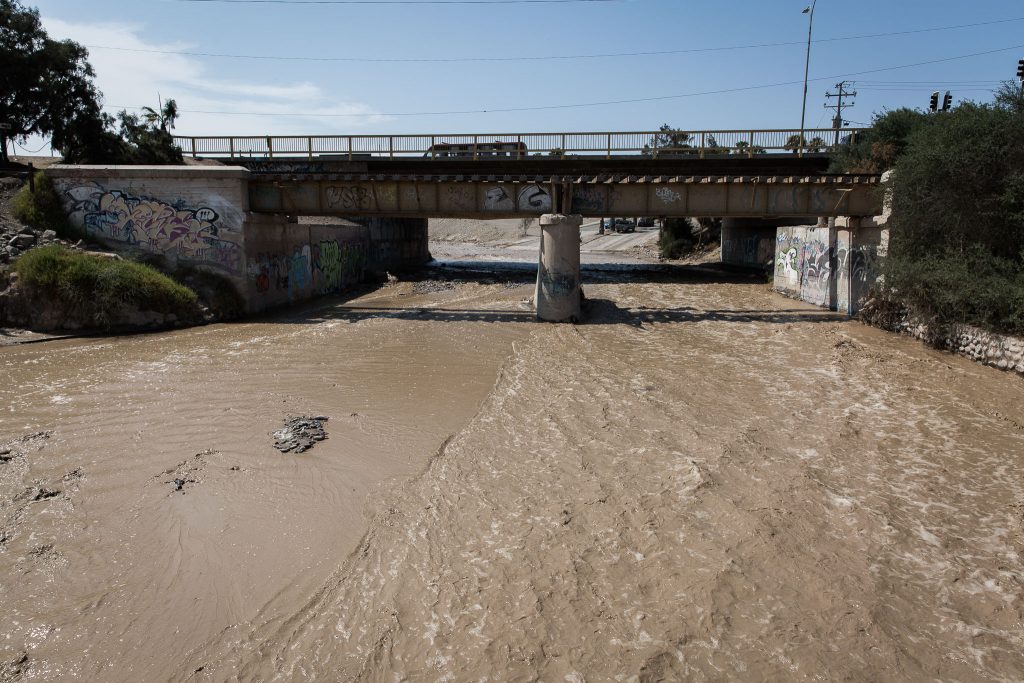 La llegada de la crecida a la ciudad fue a las 00:40 de la madrugada, con un importante arrastre de deshechos, por lo que la Dirección de Medio Ambiente Aseo y Ornato –DIMAO- y COSEMAR, se encuentran evaluando los sectores con problemas y posibles obstrucciones que pueda tener la bajada del río.