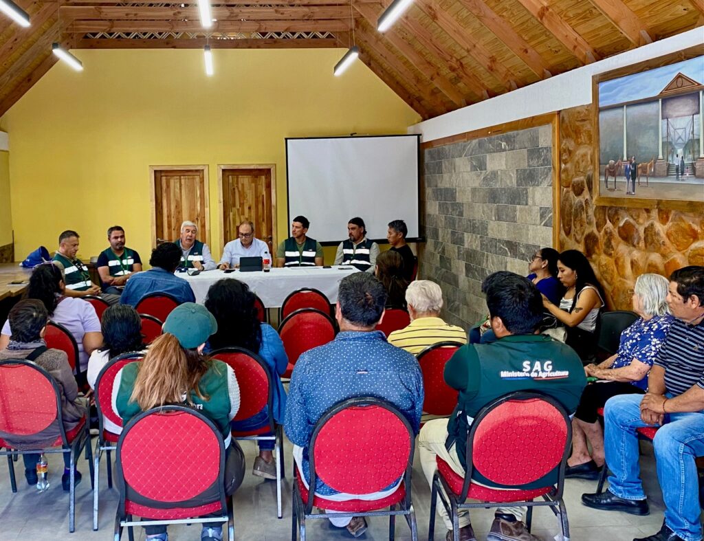 Durante la jornada, profesionales del SAG presentaron las medidas que se están ejecutando en el territorio, explicando los protocolos de vigilancia, control y tratamiento que el Servicio aplica en caso de detectar un brote. Además, se dio a conocer al equipo técnico que trabaja permanentemente en el sector, promoviendo el contacto directo con la comunidad.