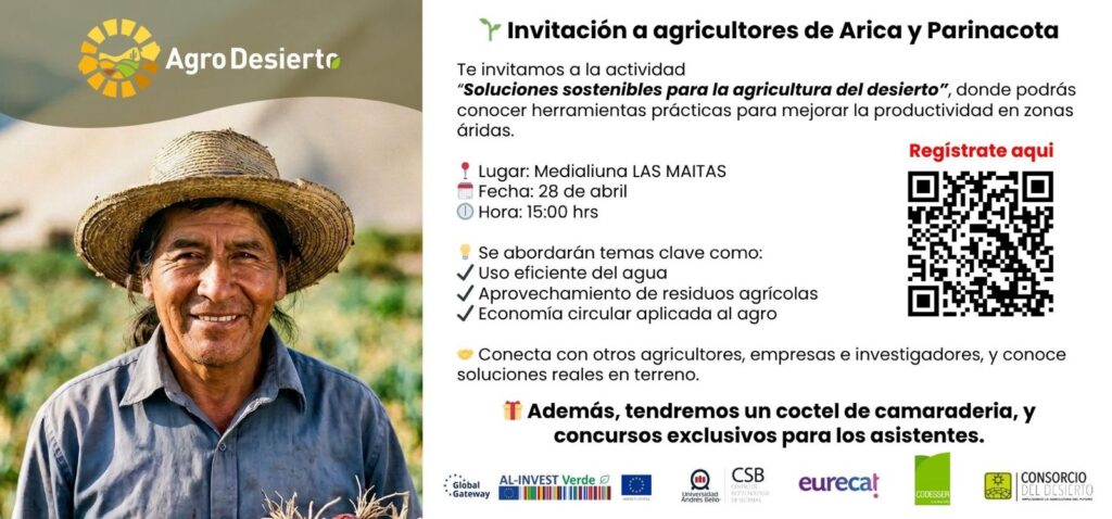 “La invitación es abierta a quienes estén vinculados o interesados en el futuro de la agricultura en la Región de Arica y Parinacota: agricultores, empresas, asociaciones gremiales, instituciones públicas, municipios, centros de formación, investigadores, estudiantes y organizaciones territoriales. Quienes quieran sumarse pueden hacerlo a través de la convocatoria oficial que estamos difundiendo junto a las instituciones organizadoras, o contactándose directamente con el equipo del Centro de Biotecnología de Sistemas de la Universidad Andrés Bello para recibir la información de inscripción. Nuestro llamado es claro; el futuro agrícola del norte se construye colaborativamente, con ciencia, tecnología, conocimiento local y decisión estratégica. Arica y Parinacota tiene todas las condiciones para ser protagonista de esa transformación”, señaló Pilar Parada Valdecantos.