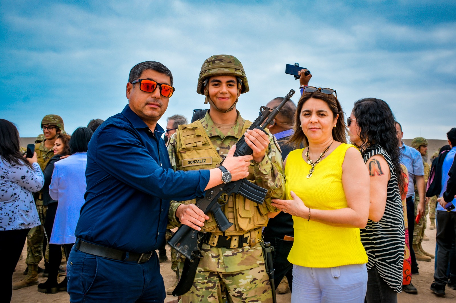En este contexto, los comandantes de las unidades ubicadas en la puerta norte del país, hicieron entrega simbólica de las armas a uno de sus soldados conscriptos, para posteriormente permitir la entrega por parte de los familiares que pudieron decir presente en Arica, acompañando a sus seres queridos. Fue así como el Comandante de la 1ra Brigada Acorazada “Coraceros”, General de Brigada Rubén Castillo Herrera, el Comandante del Regimiento Logístico N°6 “Pisagua”, Coronel Mario Larenas Aravena, el Comandante de la Brigada Motorizada N°24 “Huamachuco”, Coronel Sebastián Silva Ramírez, y el Comandante de la histórica Brigada Motorizada N°4 “Rancagua”, Coronel Enrique del Fierro Lucar; felicitaron a sus respectivos reclutas por su compromiso con la Patria, al ingresar voluntariamente para realizar su Servicio Militar y los instaron a continuar con el mismo ímpetu que han mostrado hasta ahora, en la que están recibiendo la instrucción y entrenamiento correspondientes a su Fase de Formación Inicial del Combatiente Individual.