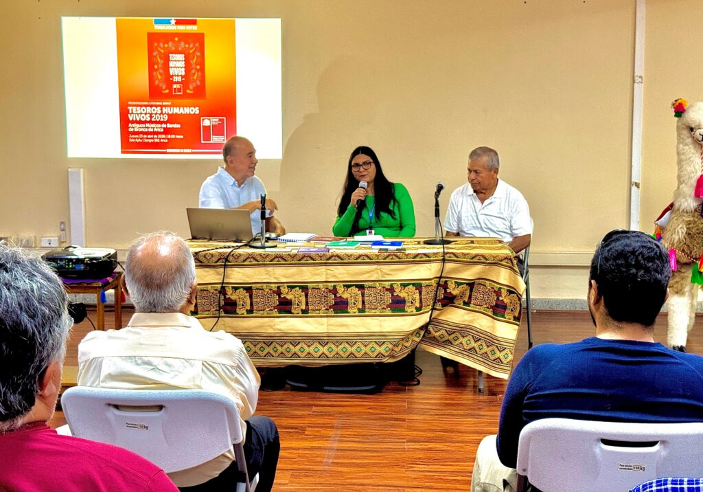 En el marco de la conmemoración del Día del Libro, el Servicio del Patrimonio Cultural de Arica y Parinacota realizó este jueves 23 de abril la presentación del texto físico Tesoros Humanos Vivos, una publicación que releva expresiones fundamentales de la identidad territorial en Chile: los Antiguos Músicos de Bandas de Bronce de Arica y las Alfareras de Quinchamalí y Santa Cruz de Cuca.